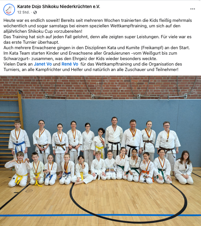 Karate Dojo Shikoku Niederkrüchten e.V.Shotokan-Karate und Selbstverteidigung in Niederkrüchten und Elmpt, für die Kreise Viersen, Heinsberg und Umgebung.Karate-Anfänger und Fortgeschrittene sind jederzeit herzlich willkommen.